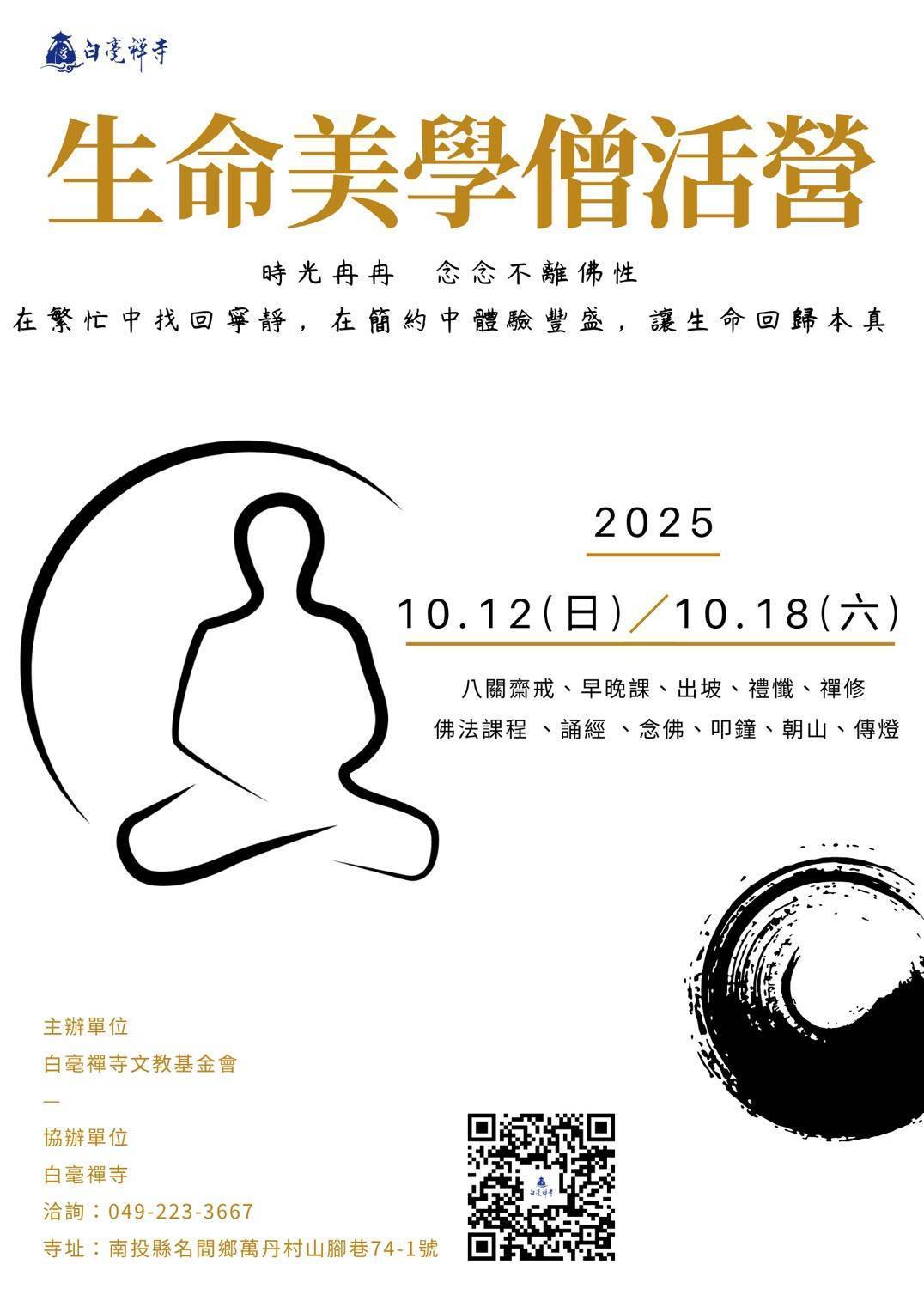 白毫禪寺~ 人道的休息站 你我的心靈之家 誠摯邀請您 回山體驗一週清淨僧活